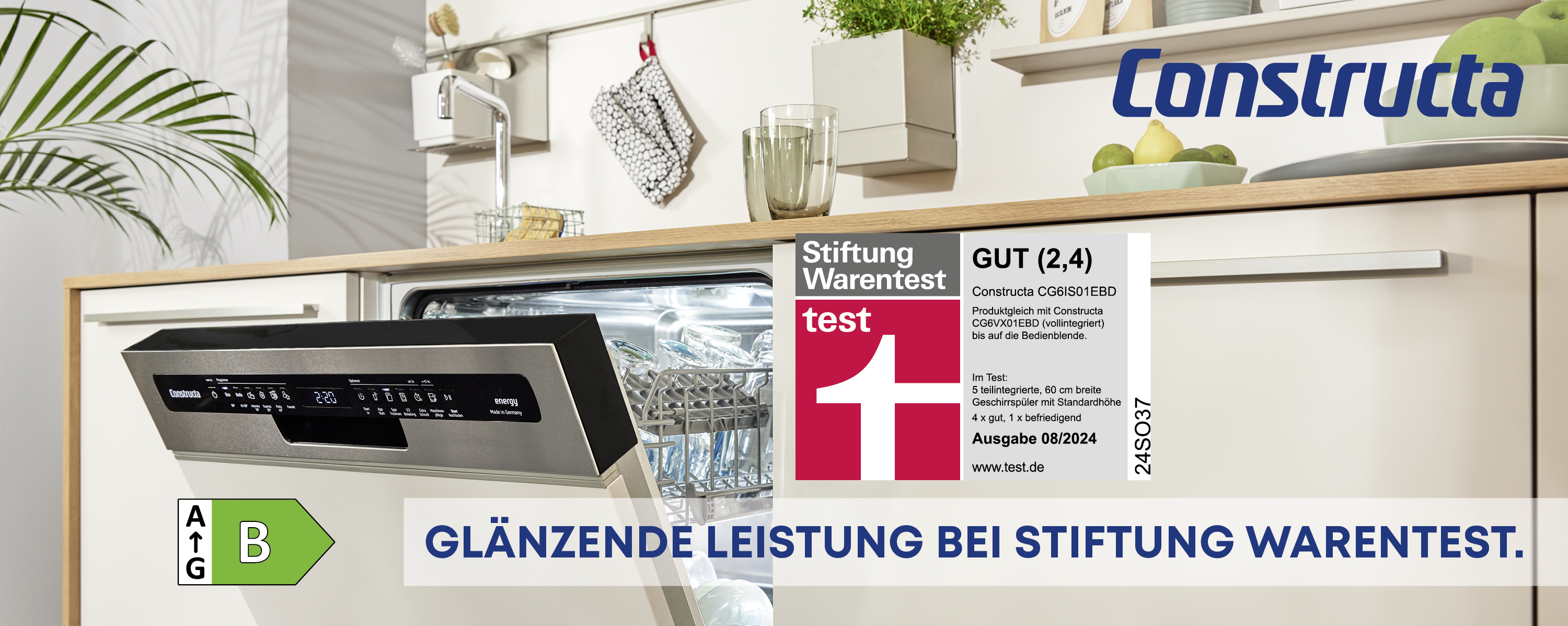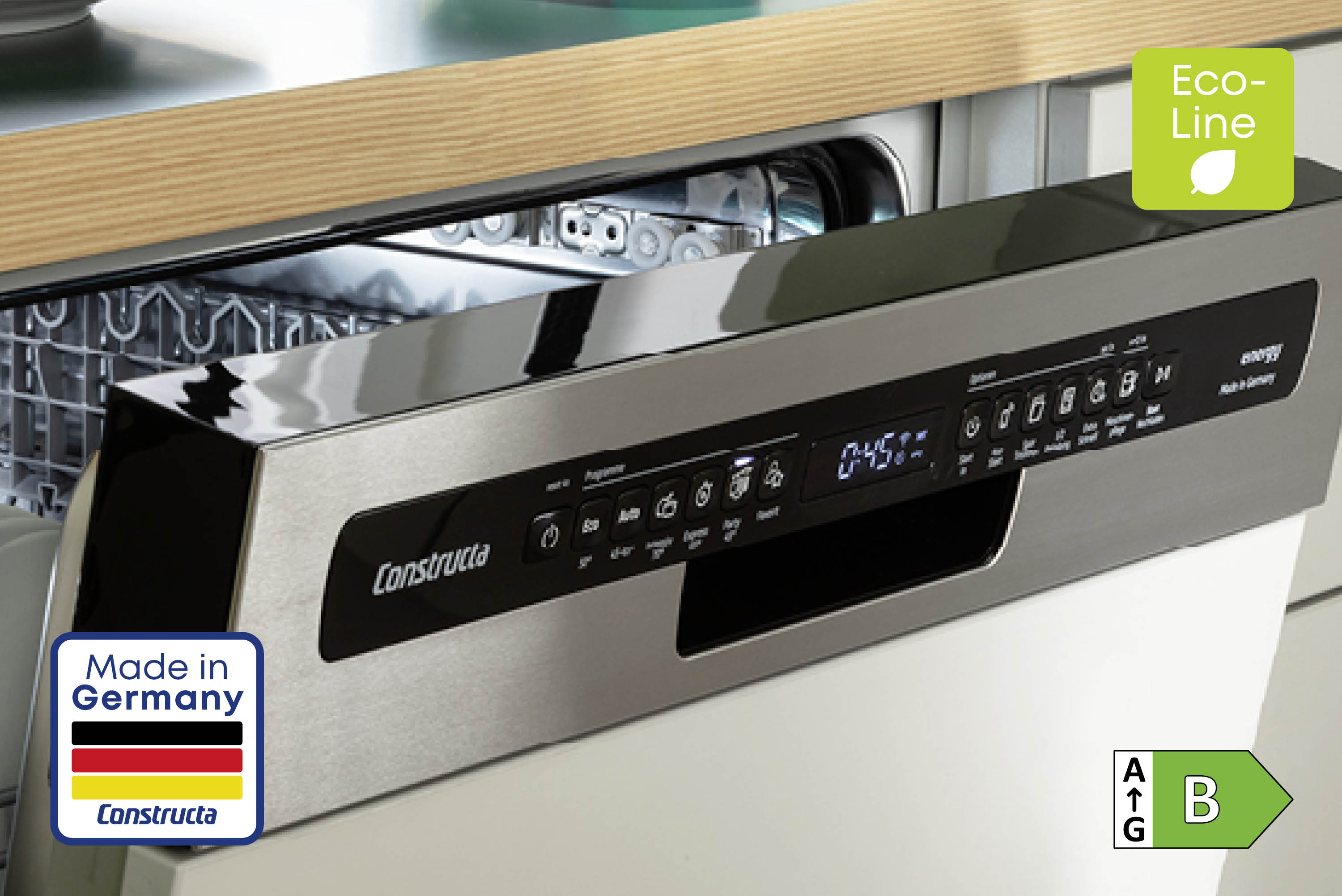 Große Leistung und Ausstattung, geringer Energieverbrauch und dabei flüsterleise – das ist die neue, umweltbewusste Eco-Line der Constructa Geschirrspüler in Energie-Effizienzklasse B. Alle Geräte sind nachhaltig, innovativ ausgestattet und mit 42 Dezibel sehr leise im Betrieb. Sie arbeiten in der sparsamen Energie-Effizienzklasse B und hinterlassen damit einen „grünen Fußabdruck“ im Haushalt. Durch den Einsatz ausgewählter Technologien und intelligentem Ressourcenmanagement kommt nur ein Minimum an Wasser und Energie (9 Liter und 0,64 kWh im EcoProgramm) zum Einsatz. Damit schont die Eco-Line die Umwelt und den Geldbeutel, ohne dabei Kompromisse bei der Leistung einzugehen. In bewährter Constructa-Manier sind die Eco-Line Geschirrspüler natürlich „Made in Germany“. >> zu den Constructa Eco-Line Geschirrspülern