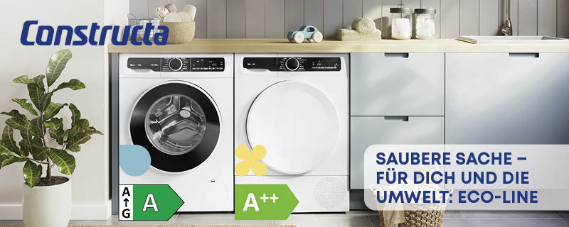 Die Eco-Line Waschmaschinen waschen in der sparsamsten Energie-Effizienzklasse A mit einer Beladungsmenge von 7, 8, 9 oder 10 kg mit Aqua Stop: lebenslanger Garantie gegen Wasserschäden. Die Eco-Line Waschmaschinen schonen die Umwelt und das Haushaltsbudget dank niedrigem Stromverbrauch. Sie überzeugen mit sauberer Wäsche - ob Handtuch, Seidenbluse, Unterwäsche, Babykleidung oder Wollpulli. >> zu den Constructa Eco-Line Waschmaschinen